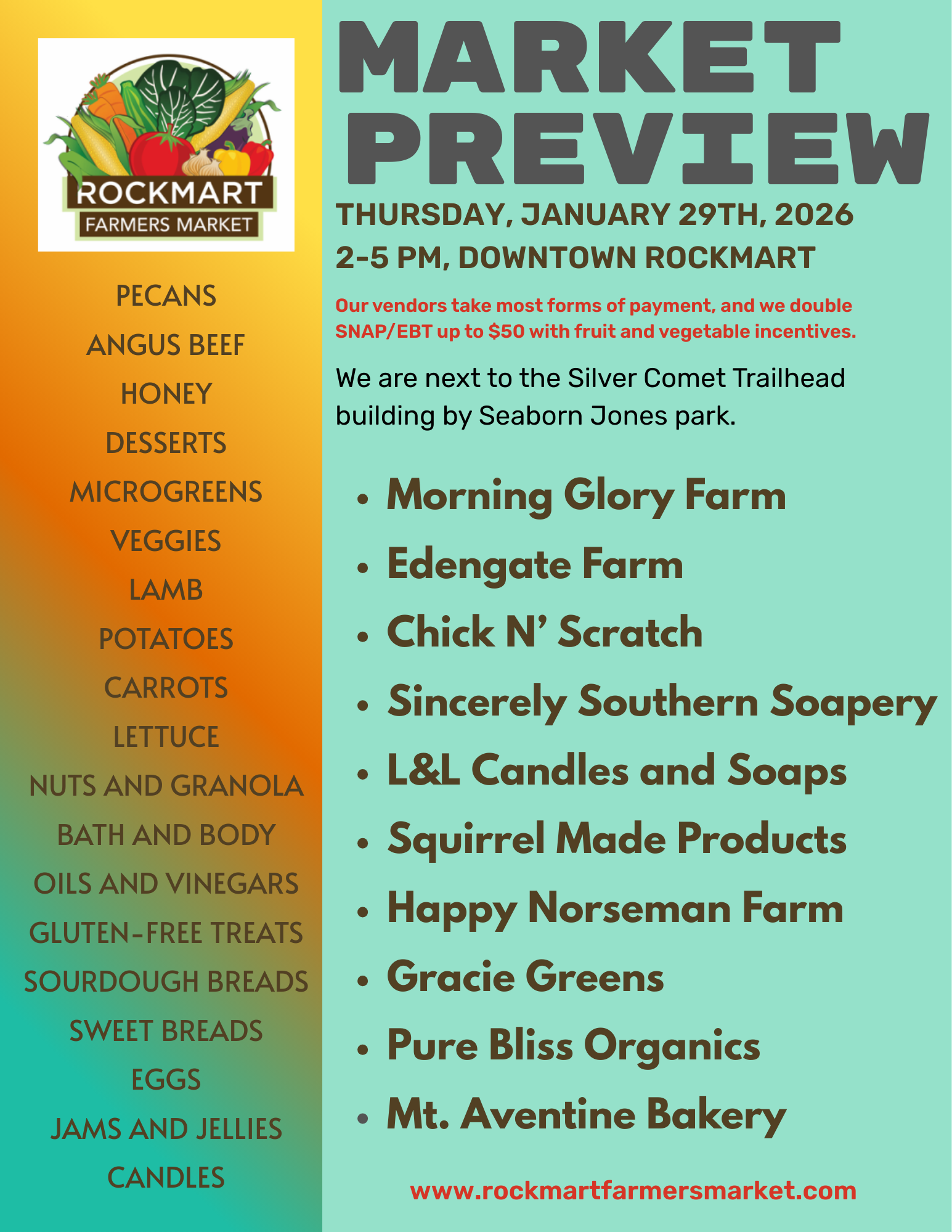 Rockmart Farmers Market January 28, 2026 Market Preview for January 29th, 2026 Rockmart Farmers Market January 28, 2026