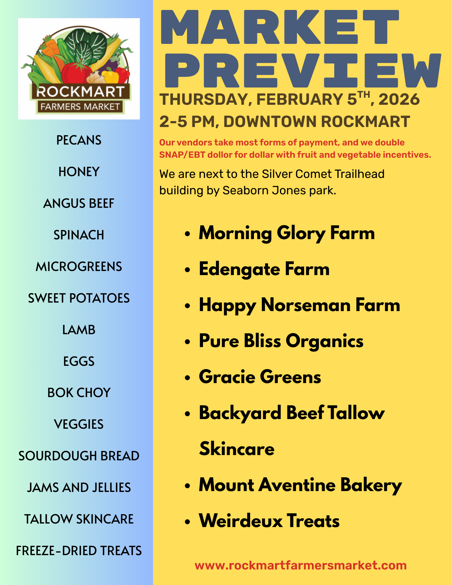 Rockmart Farmers Market January 28, 2026 Market Preview for January 29th, 2026 Rockmart Farmers Market January 28, 2026