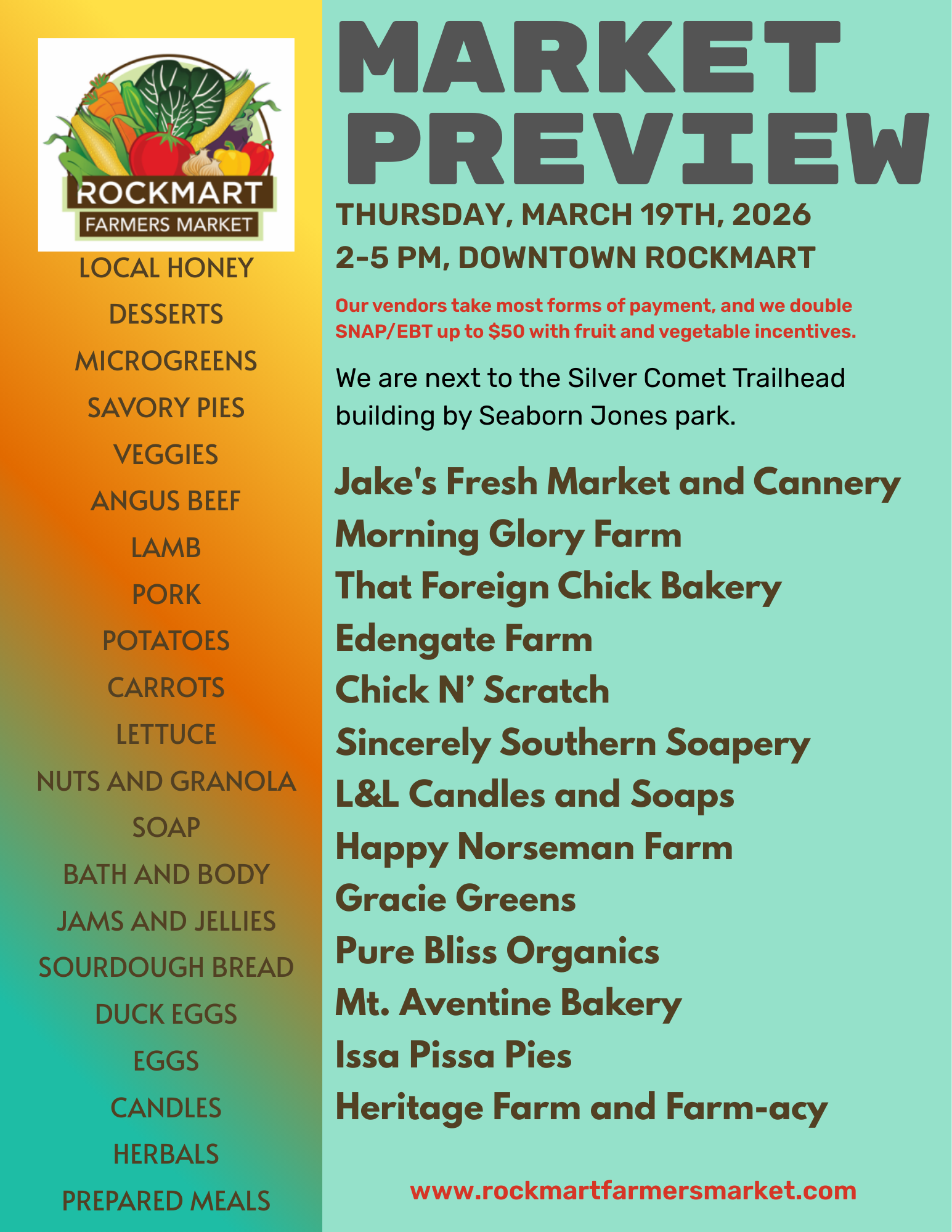 Rockmart Farmers Market March 18, 2026 Market Preview for March 19th Rockmart Farmers Market March 18, 2026