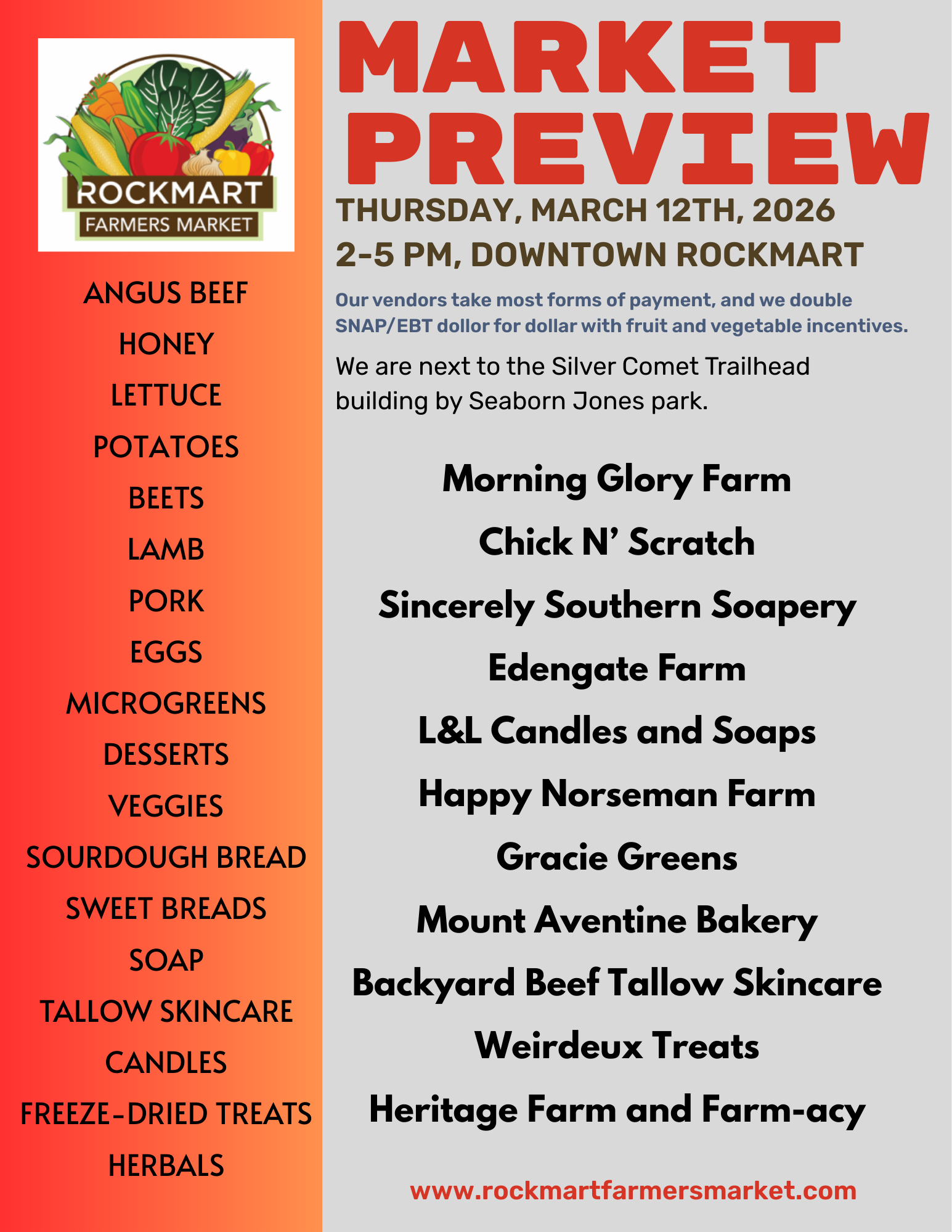 Rockmart Farmers Market March 11, 2026 Market Preview for March 12th Rockmart Farmers Market March 11, 2026